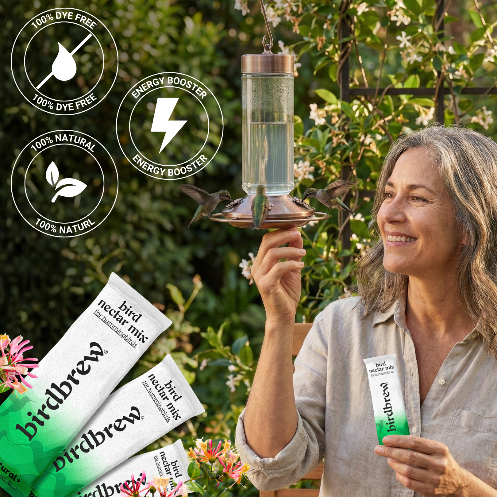 Birdbrew is a powdered nectar blend made from natural sugars. It’s free from artificial dyes, additives, or preservatives - just the good stuff birds love. 💚